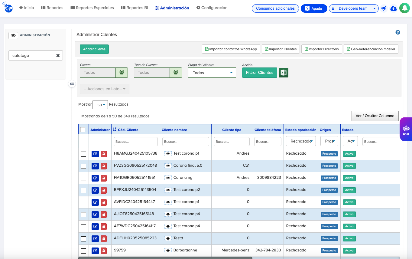 - Es posible editar clientes en estado Prospecto no aprobados directamente desde el Catálogo de Clientes.